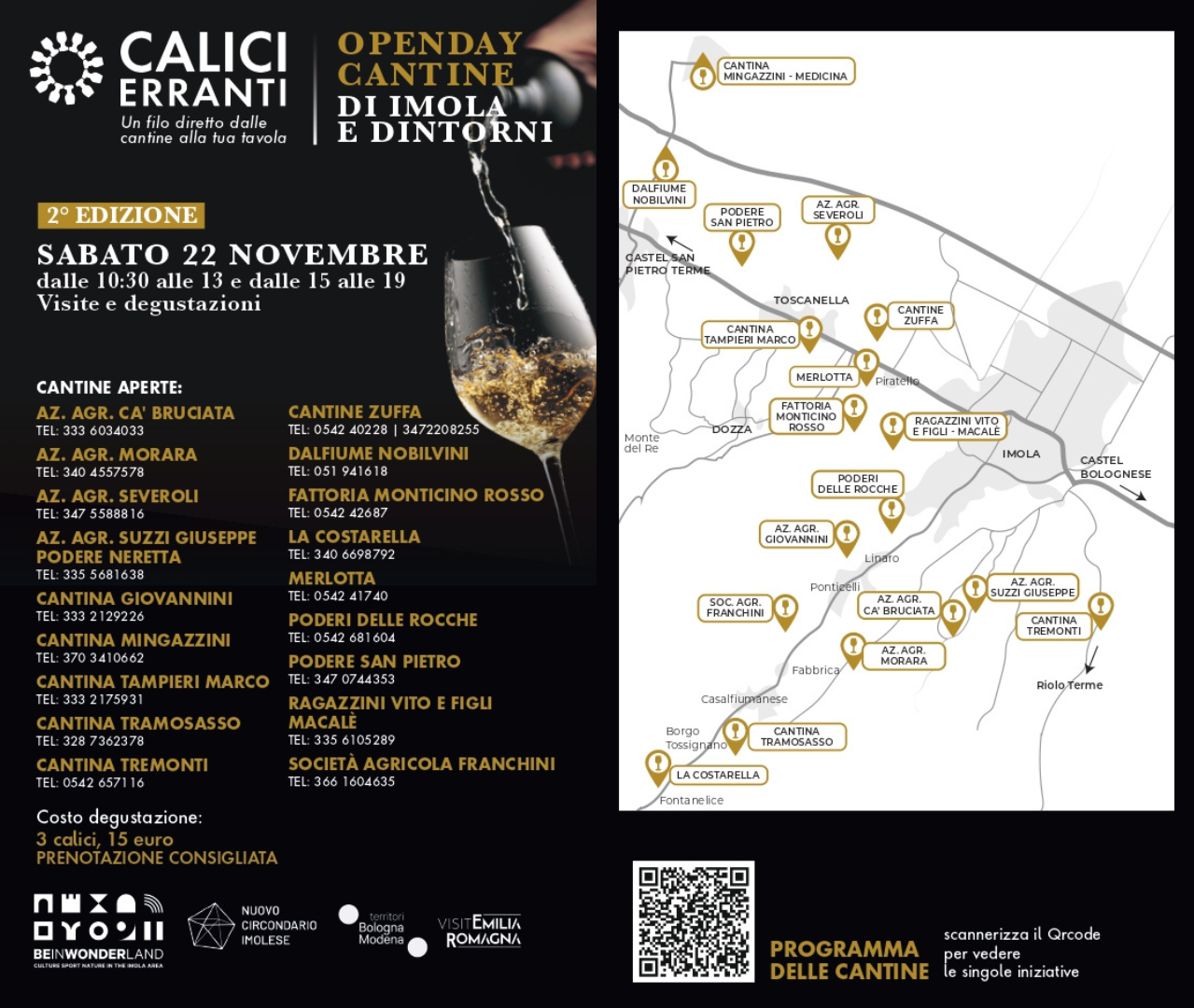 Calici Erranti è un progetto promosso dal Nuovo Circondario Imolese dedicato alle aziende vitivinicole del territorio imolese e inserito nell’ambito del bando “PTPL 2025”, finanziato dalla Città Metropolitana di Bologna.