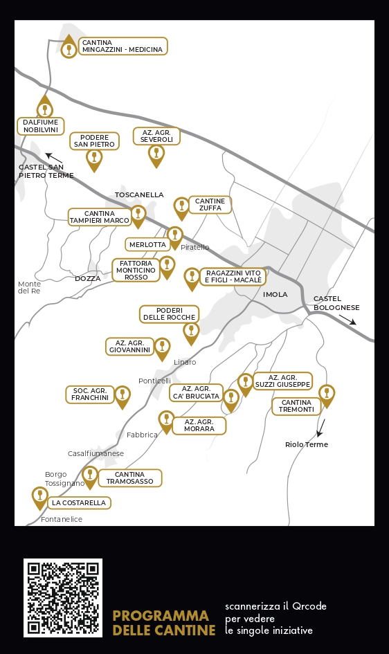 Le cantine ospiteranno inoltre eventi culturali e artistici – dalle mostre di pittura e fotografia a performance musicali, anche in collaborazione con l’Accademia Pianistica Internazionale di Imola – e, se le condizioni meteorologiche lo permetteranno, accompagneranno i visitatori in passeggiate tra i vigneti.