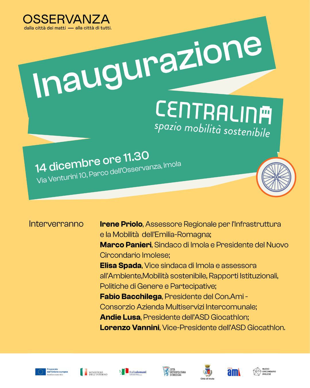 Secondo il Presidente del Nuovo Circondario Imolese Marco Panieri e la Vicesindaca del Comune di Imola Elisa Spada: “La Centralina è il primo spazio dell’Osservanza che restituiamo alla comunità grazie all’importante intervento di rigenerazione in atto. Un luogo pensato per promuovere la mobilità attiva, che è essa stessa energia e con essa la scoperta del territorio, a partire da quello urbano, con la sua rete di piste ciclopedonali e spazi verdi, fino alle bellezze del paesaggio naturale che ci circonda. Un luogo per sviluppare eventi e progettualità che coinvolgano famiglie, cittadinanza, scuole in rete con le realtà del territorio. Ringraziamo tutti coloro che hanno lavorato per questo importante risultato, in particolare Con.Ami, il Nuovo Circondario Imolese e Bam! Strategie Culturali e l’Associazione Giocathlon, da sempre impegnata per la promozione del movimento come forma di salute, con grande competenza e passione, per aver colto questa importante sfida.”
