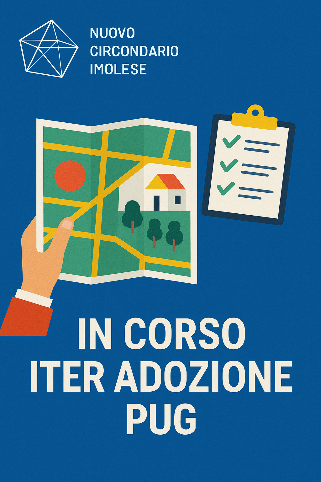 Dopo la ratifica dell'Assemblea del Nuovo Circondario Imolese, il PUG è pubblicato e trasmesso al CUM (Comitato Urbanistico Metropolitano) che valuta la documentazione tecnica ed esprime il proprio parere motivato, di norma entro centoventi giorni, in merito alla conformità del piano alla normativa vigente e al rispetto dei limiti massimi di consumo di suolo degli obiettivi di sostenibilità ambientale e territoriale.