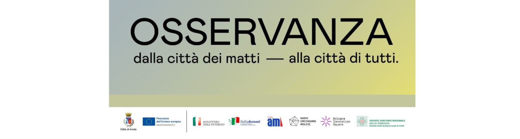 Secondo il Presidente del Nuovo Circondario Imolese Marco Panieri: “L’Osservanza rappresenta una parte profonda della nostra storia, che abbiamo il dovere di custodire e, insieme, di rigenerare. Per decenni è stata simbolo di sofferenza; oggi vogliamo che diventi il luogo di una rinascita collettiva, dove salute mentale, cultura, formazione e innovazione convivono in un progetto di comunità aperta, accogliente e solidale. L’investimento PNRR sull’Osservanza è uno dei progetti più prestigiosi e importanti di cui andiamo orgogliosi: un intervento che cambierà il volto della città, trasformando un ex manicomio in un Parco della conoscenza e dell’innovazione, ricco di vita e opportunità. È la dimostrazione concreta di come la memoria possa diventare energia vitale per costruire un futuro più giusto, inclusivo e consapevole.” L’Osservanza cambia dunque volto e significato: da città dei matti a città di tutti. Un invito a guardare al passato per costruire un futuro più consapevole e inclusivo."