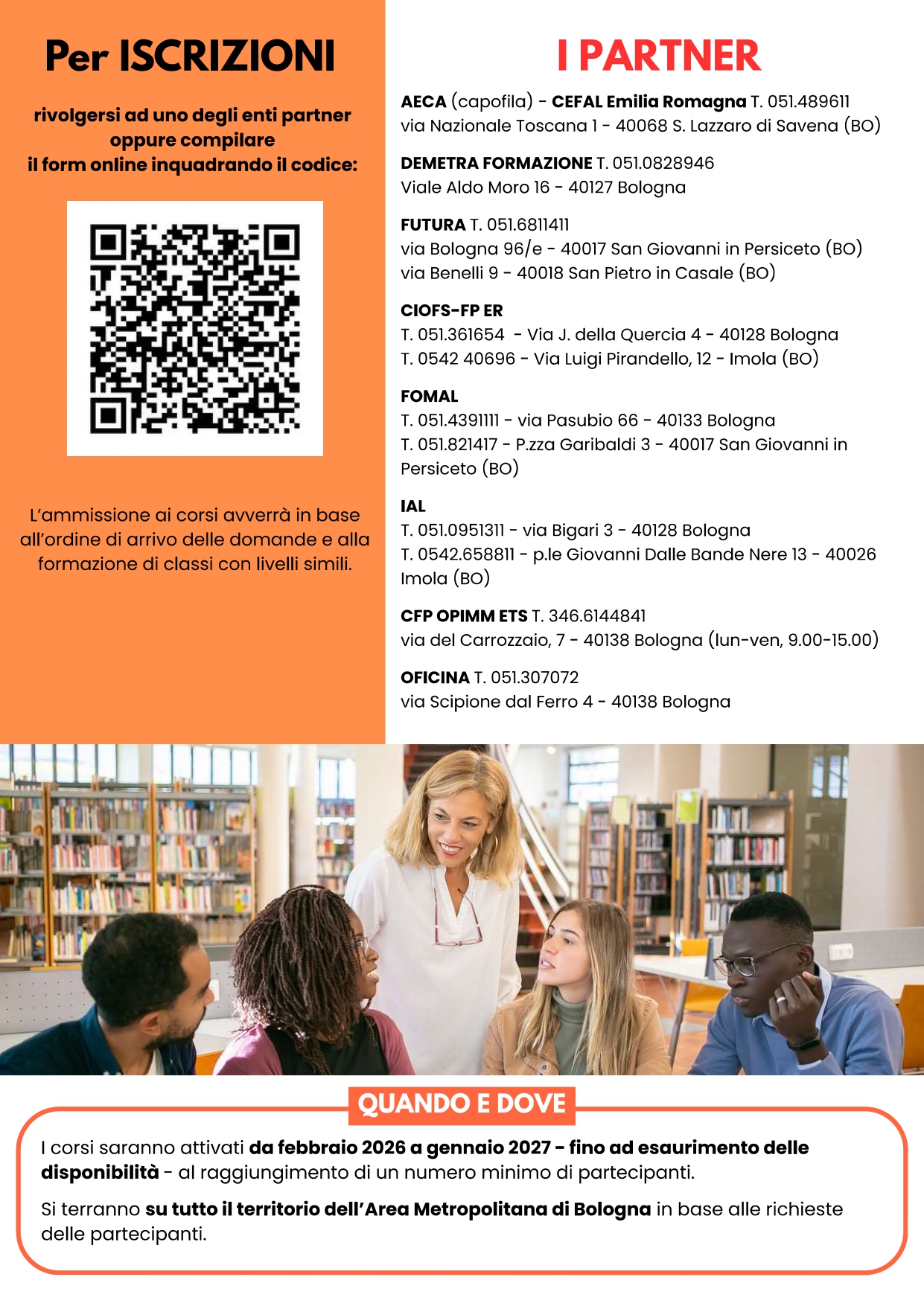 Nell’ambito territoriale metropolitano di Bologna, che comprende anche il Nuovo Circondario Imolese, la programmazione si articola in due principali filoni operativi: percorsi per l’acquisizione di competenze linguistiche utili alla partecipazione alla vita della comunità e percorsi orientati all’attivazione verso il lavoro, con un’attenzione particolare alle donne. I corsi saranno attivati da febbraio 2026 a gennaio 2027, fino ad esaurimento delle disponibilità o al raggiungimento del numero minimo di partecipanti.
